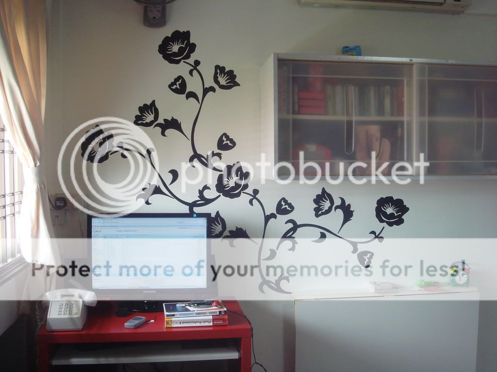 no more green or purple for the wall. it's now the pure white & a tad of grey. i love. great job by honey. we spent 1day on it, coz my previous purple needed tonnes of layering. boo!